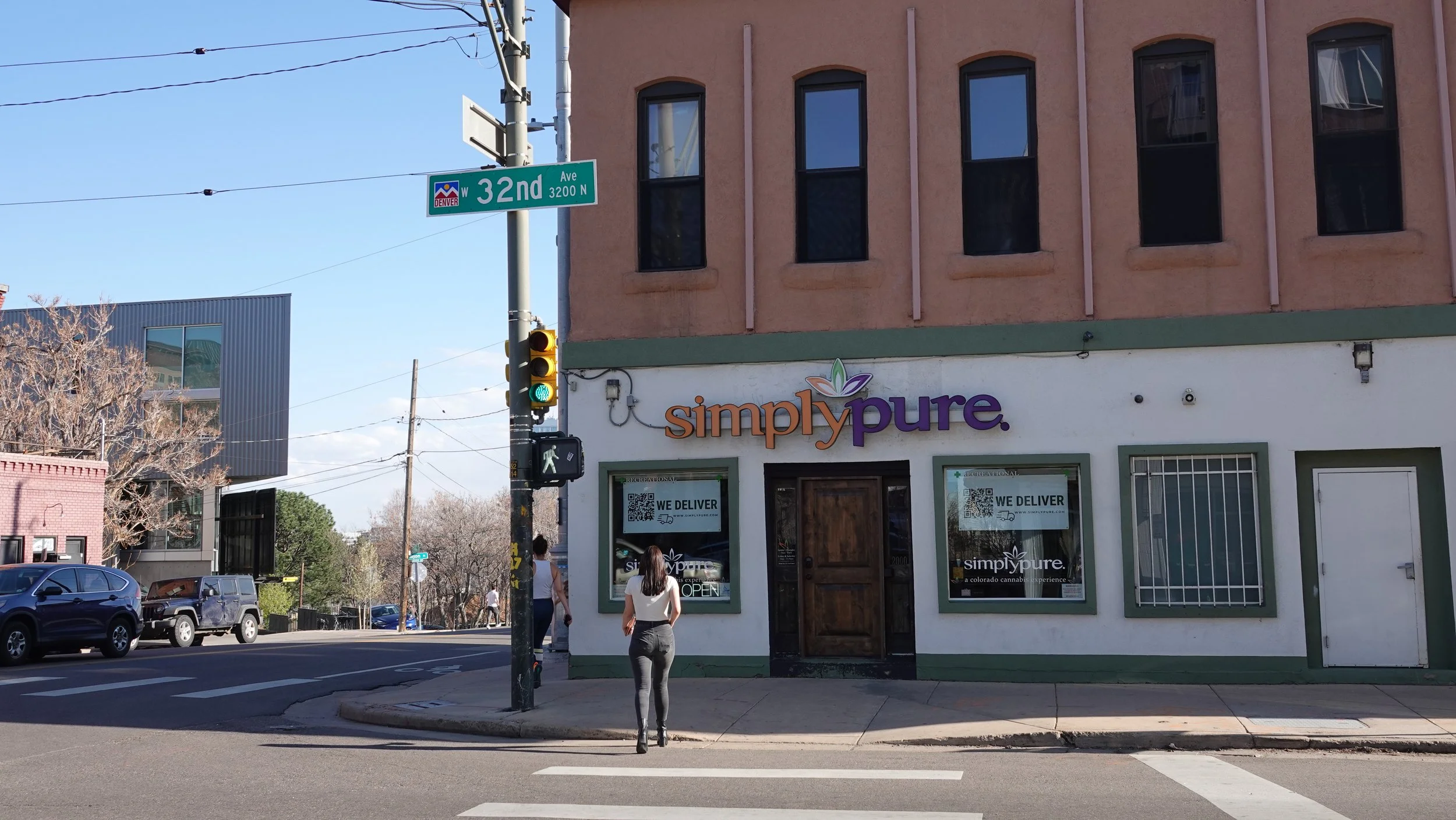 A customer walks into Simply Pure, the first ever black-owned dispensary, in Denver, CO owned by CU Boulder regent and alumna Wanda James on April 15, 2024.